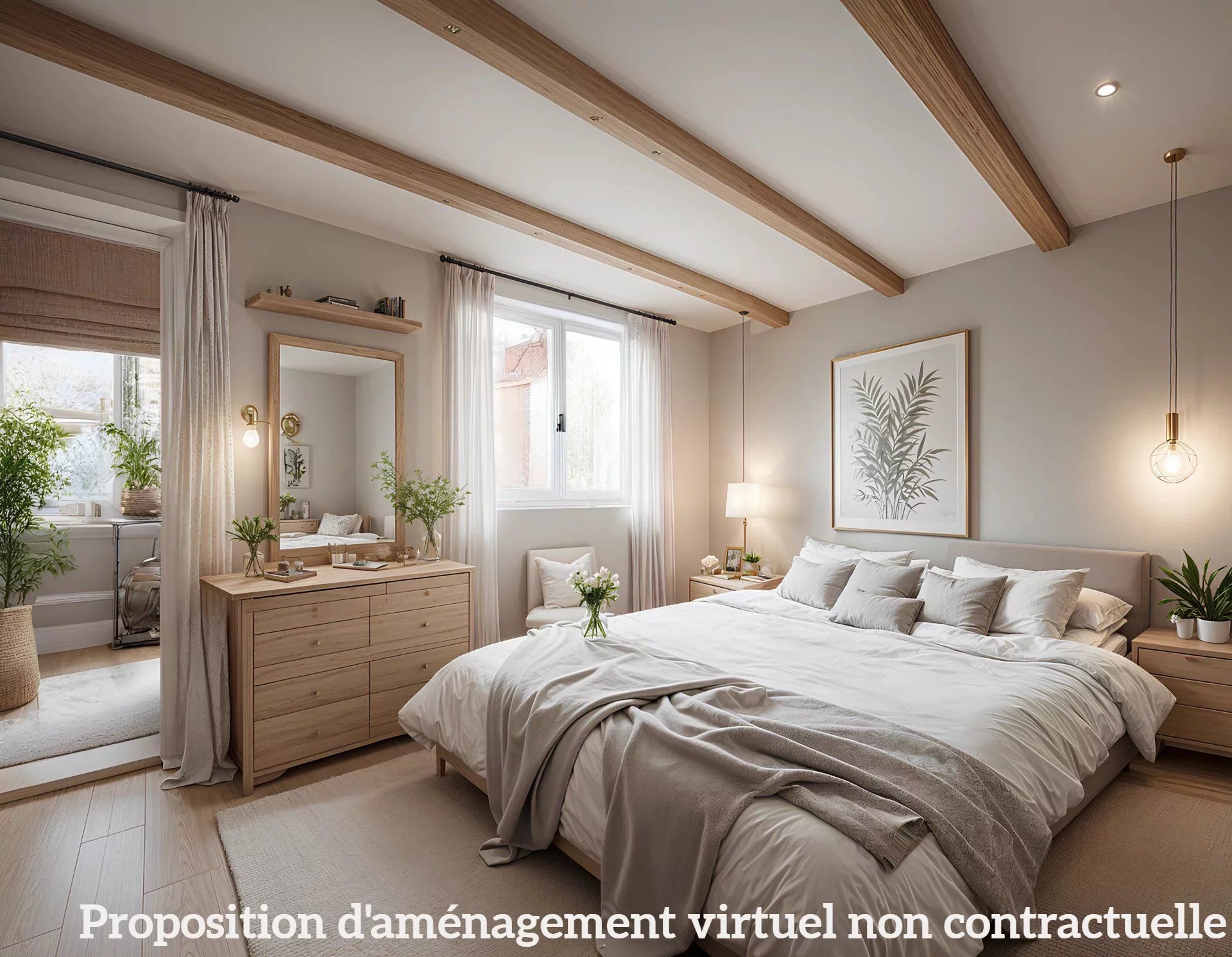 À l’étage : Suite parentale disposant d’une grande salle de bains et d’un dressing, ainsi qu’une seconde chambre avec salle de bains.