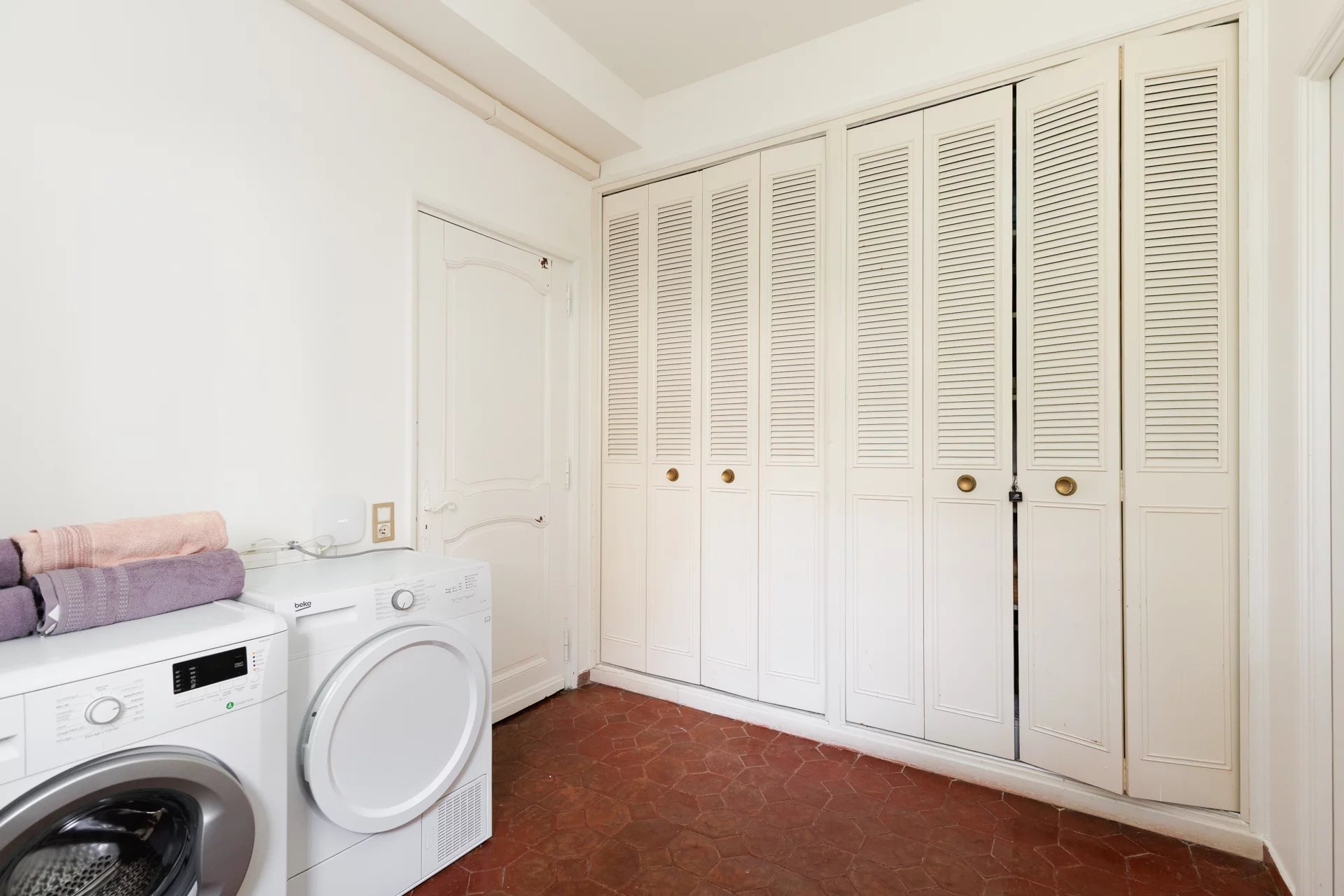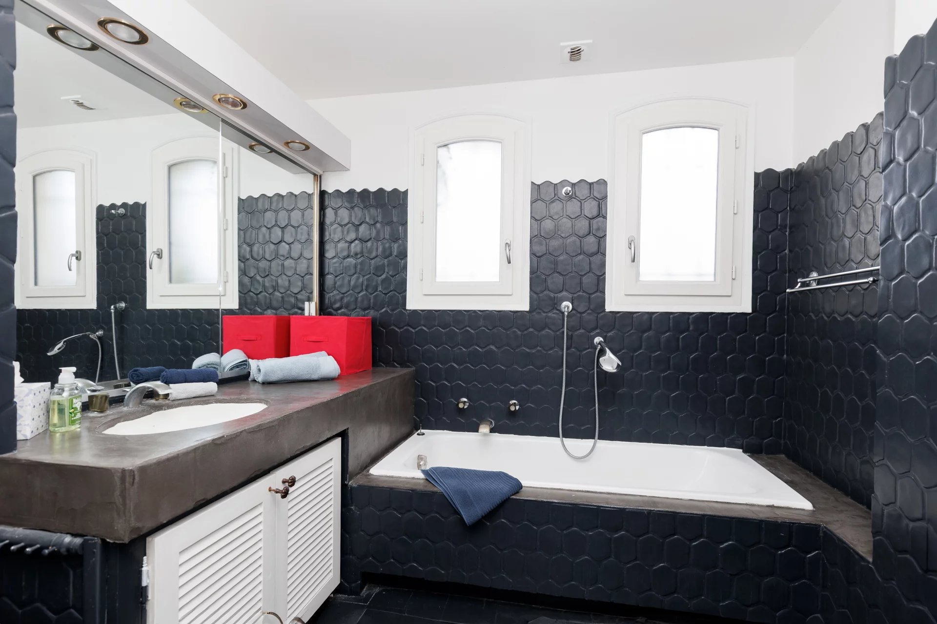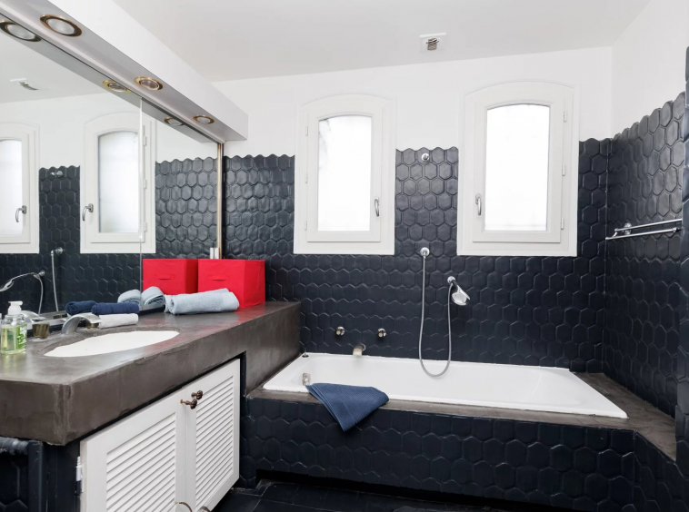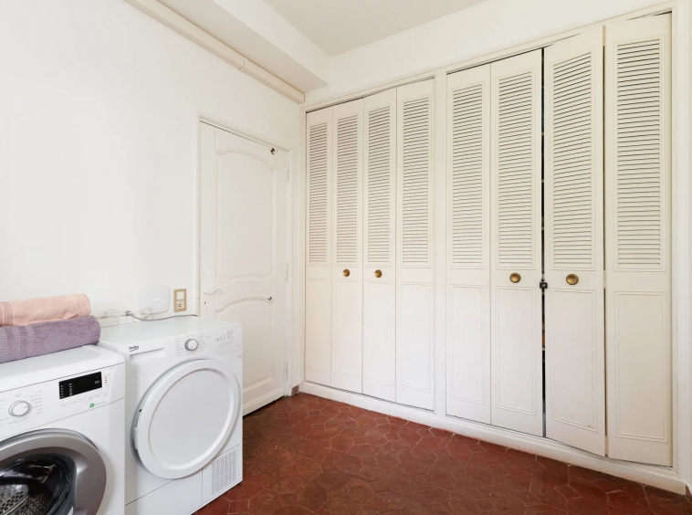 Au rez-de-jardin : une première chambre lumineuse, une grande salle de bain, une buanderie spacieuse, une cuisine séparée, ainsi qu’une pièce d’eau avec dressing.