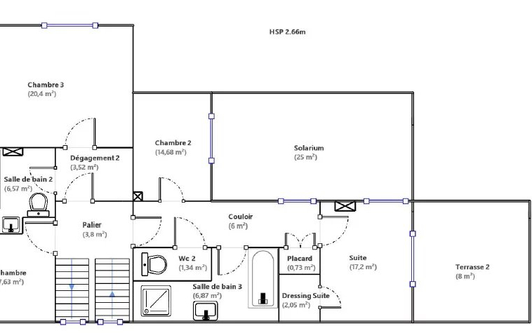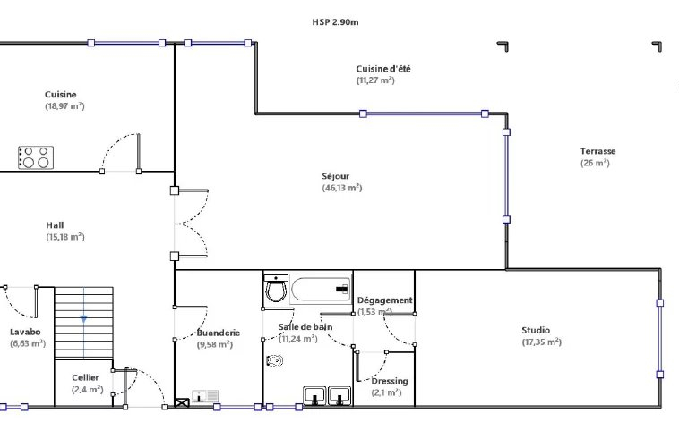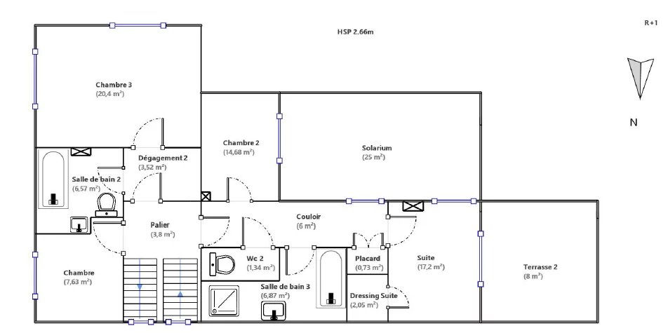À l’étage : Une 2éme grande chambre avec salle de bain et dressing, une 3éme chambre avec salle de bain ,une 4éme chambre et un bureau